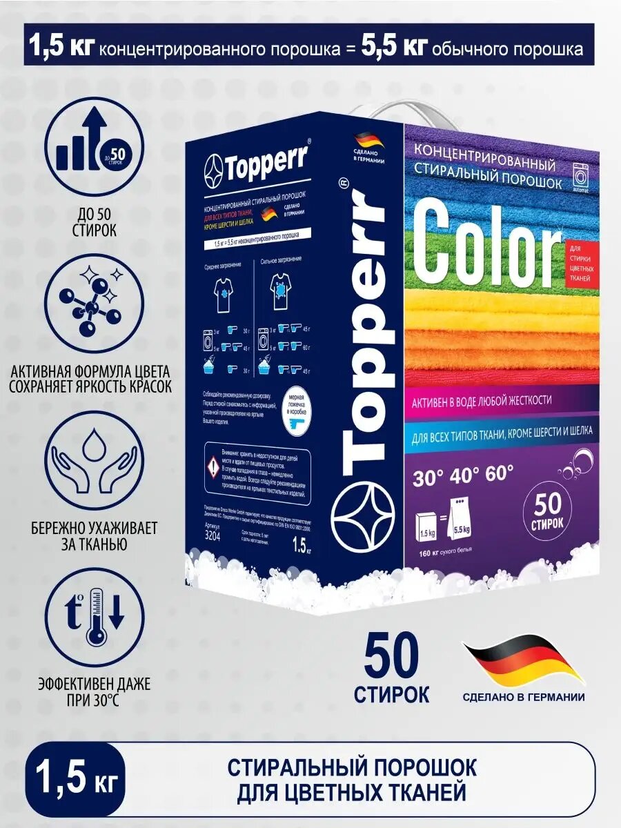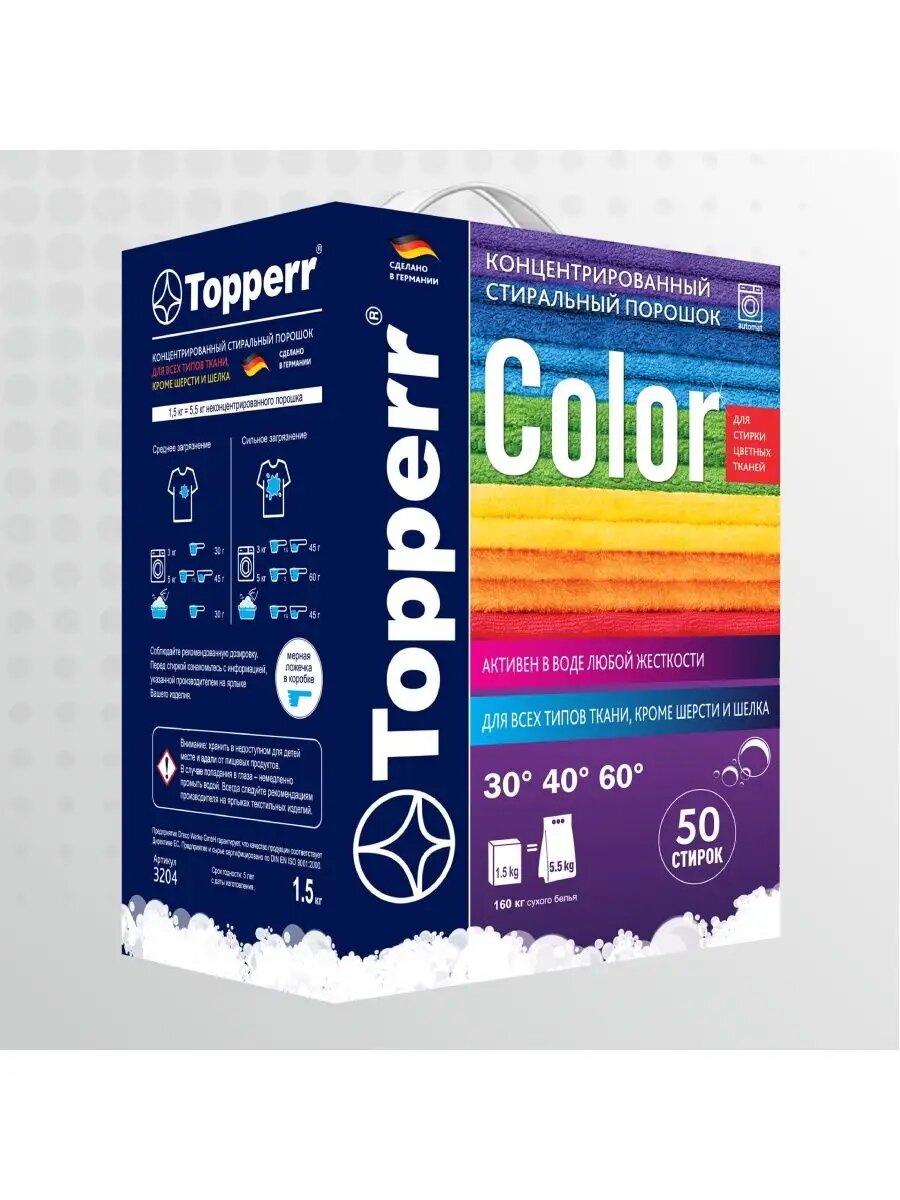 Стиральный порошок Topperr Color для цветных тканей, концентрат, 1,5 кг