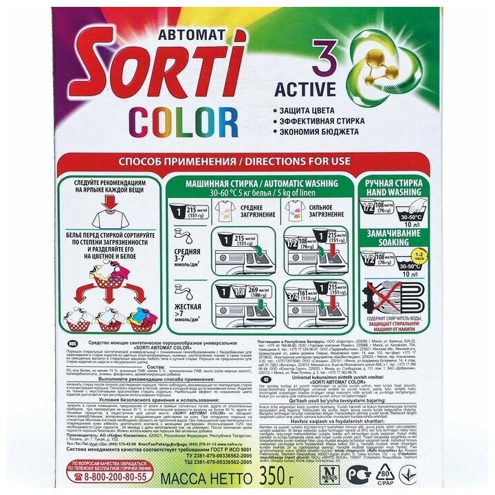 Купить Стиральный порошок-автомат Sorti "Color", для цветного белья, 350г (800-5)