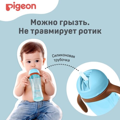 Купить Pigeon Поильник высокий с трубочкой, голубой 9+ мес , мод. 13757