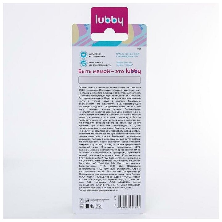 Lubby Ложка детская "Нежная" для кормления, с мягким кончиком, от 4 мес. интересное: