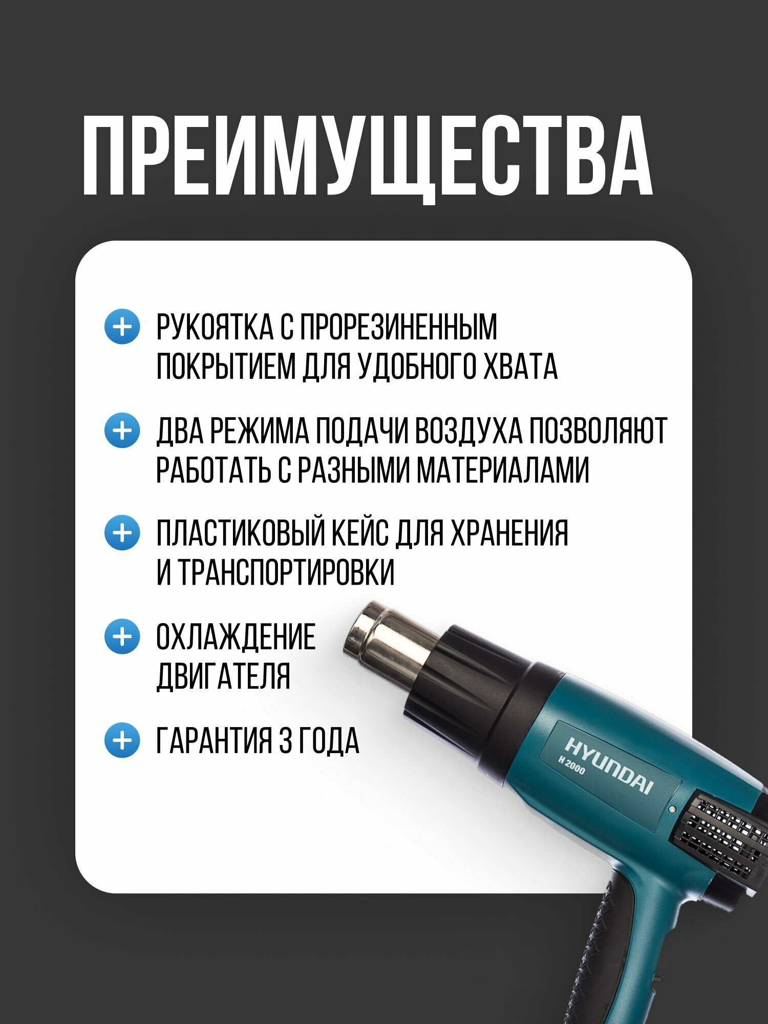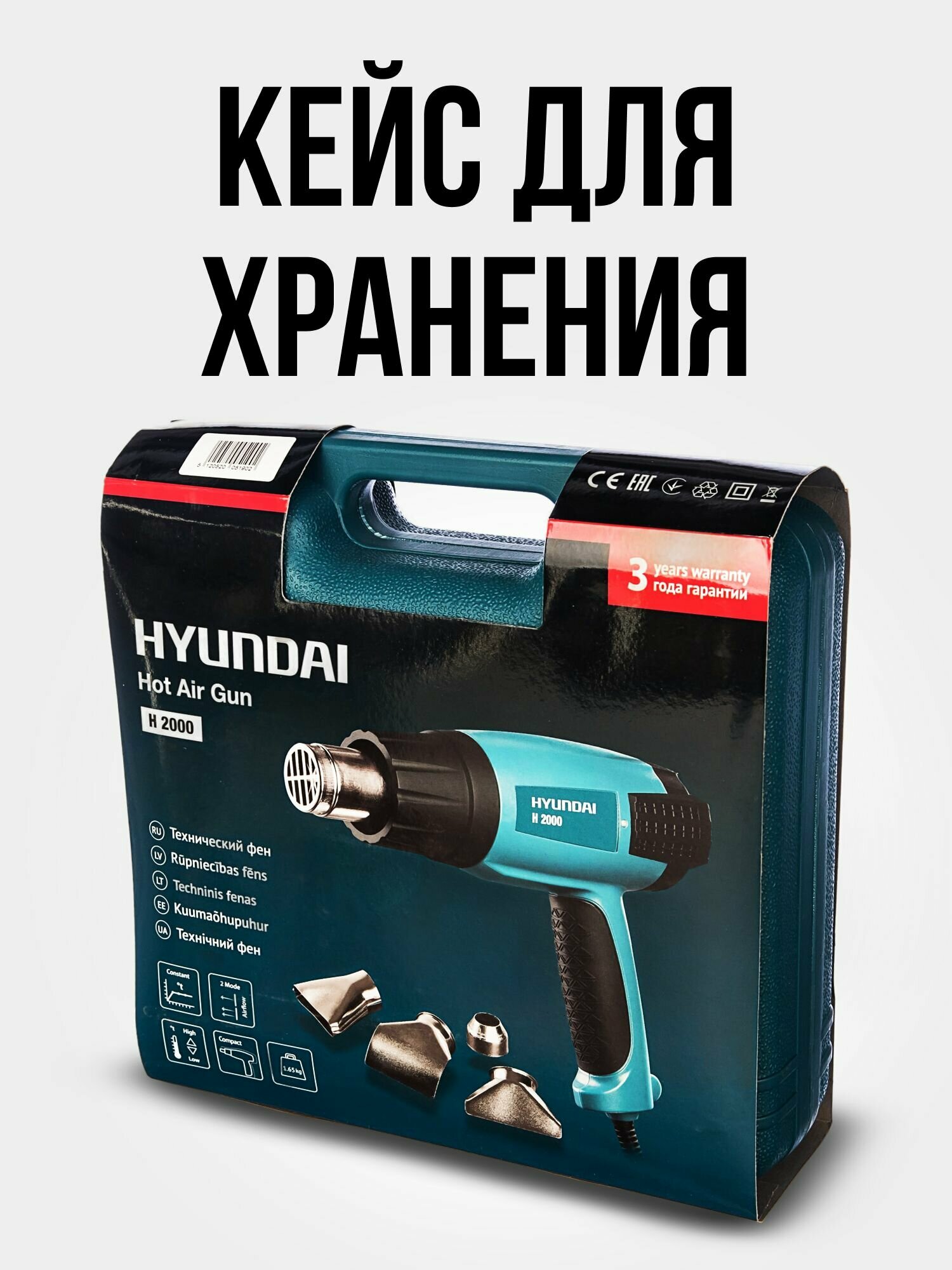 Технический фен Hyundai H 2000 Case, 2000 Вт