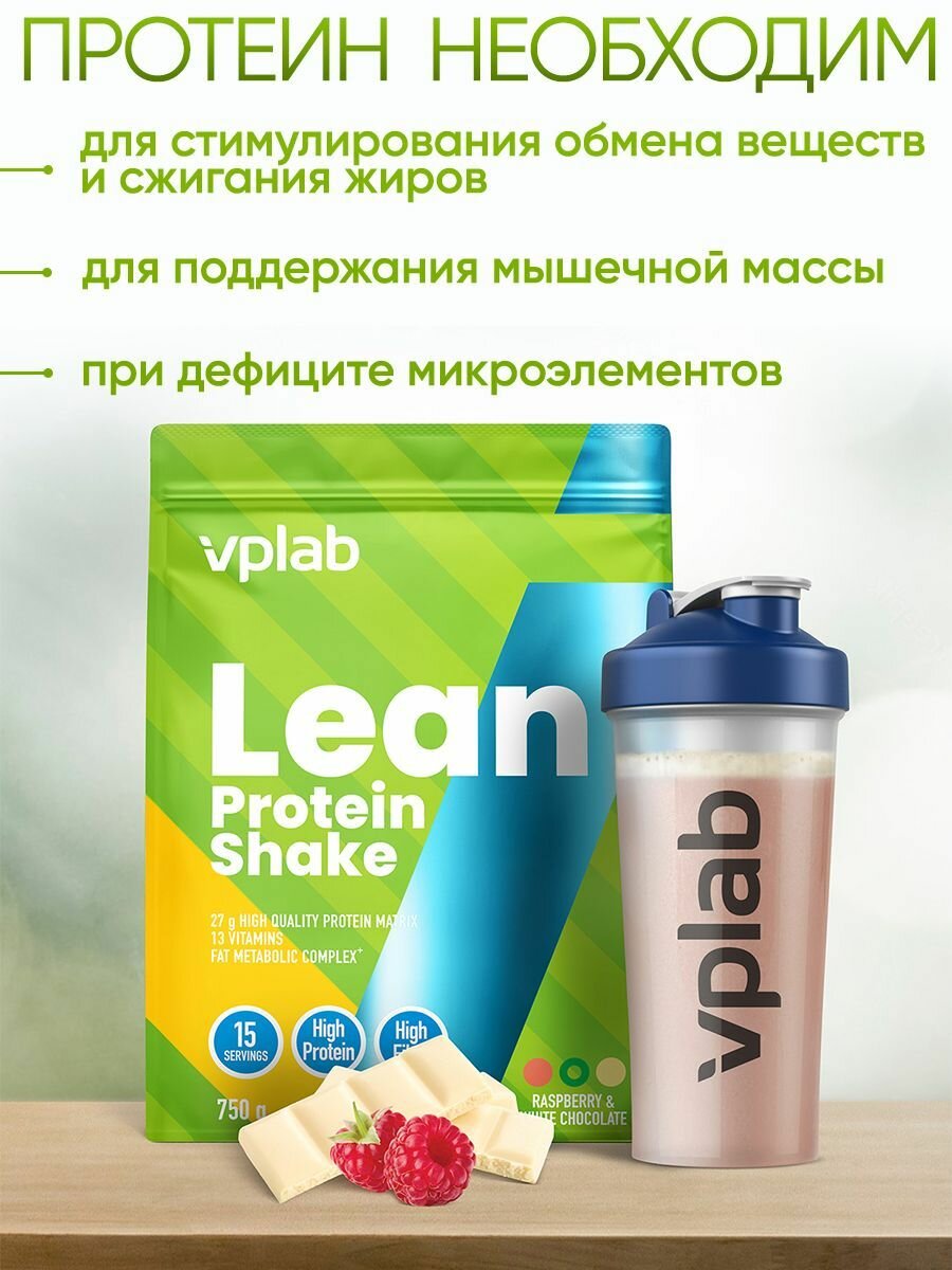 Купить Vplab, Lean Protein Shake, 750 г (малина-белый шоколад)