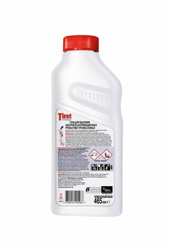TIRET Профессионал Гель для удаления засоров в канализационных трубах, 1 л