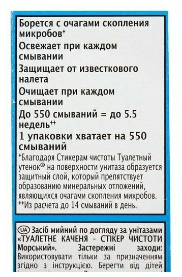 Туалетный Утенок Средство для очистки унитаза "Стикер чистоты Морской", 3шт х 10 г