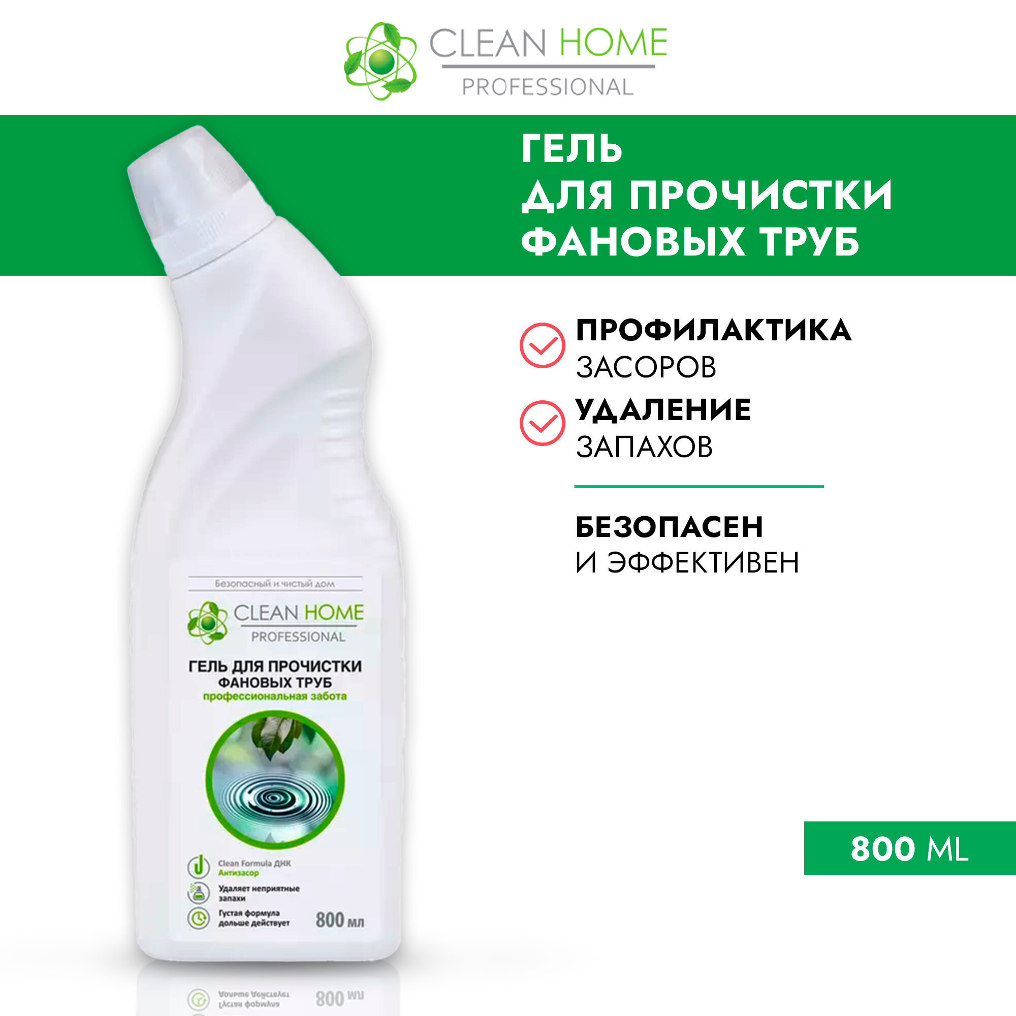 Clean Home Гель для прочистки фановых труб, Professional, 800 мл