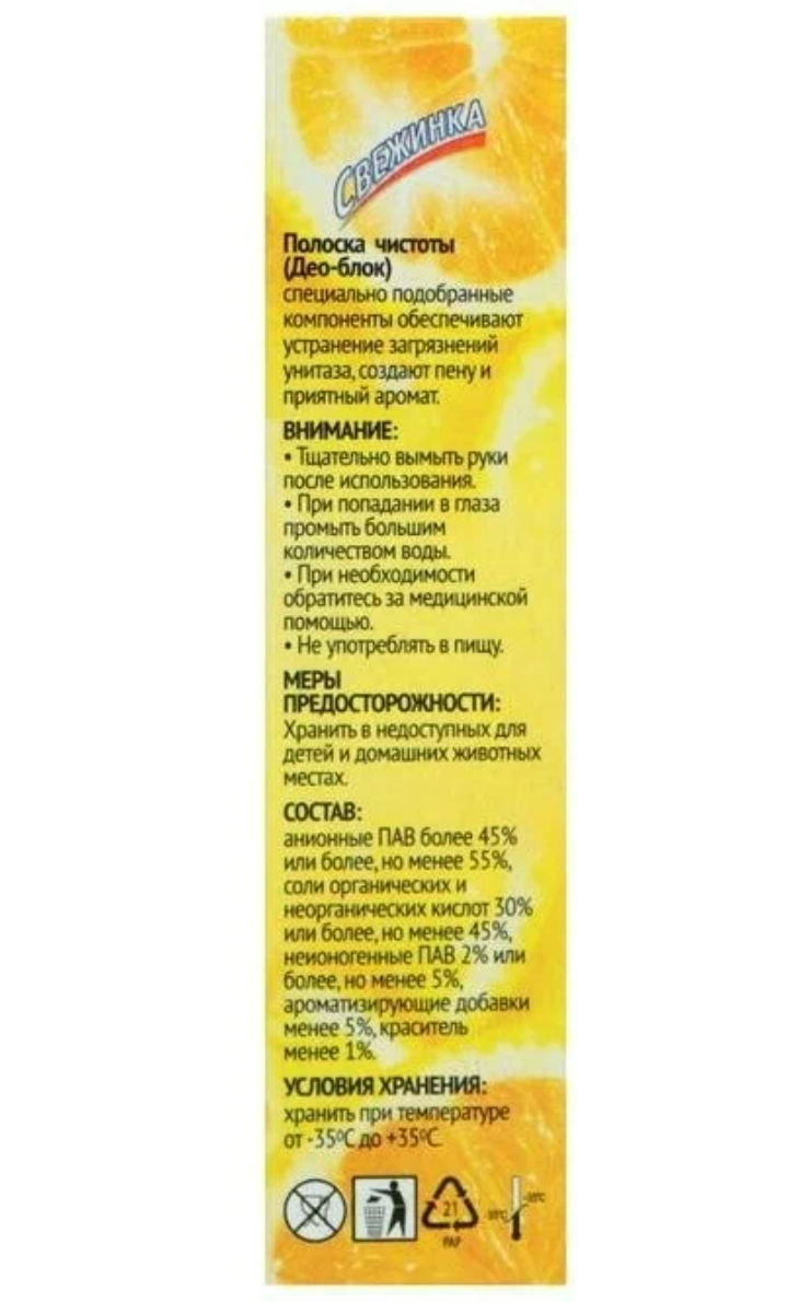 Стикер для очищения унитаза Свежинка Полоска чистоты, лимон 3 шт по 10 г