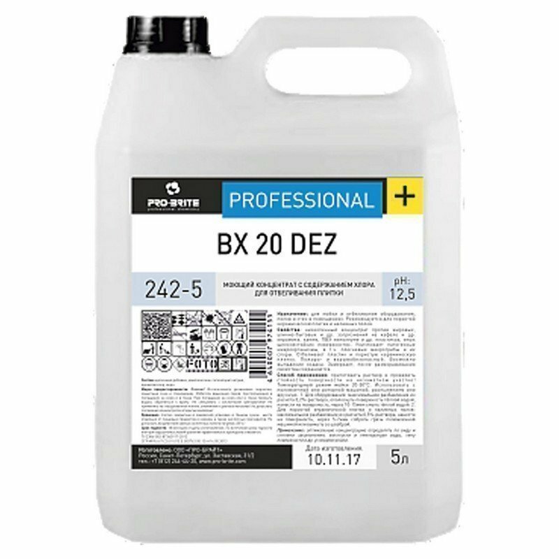Ниже Вы можете прочитать отзывы на PRO-BRITE BX 20 DEZ моющий концентрат с содержанием хлора 5л, ознакомится с подробными характеристиками, посмотреть интересные обзоры и фотографии на PRO-BRITE BX 20 DEZ моющий концентрат с содержанием хлора 5л.