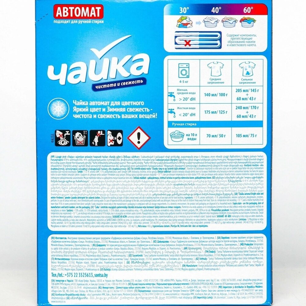 Стиральный порошок Чайка Яркий цвет и зимняя свежесть, автомат.для цветного, 400 г 2804134