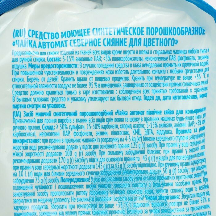 Стиральный порошок Чайка 5 кг, Автомат для цветного белья Северное сияние