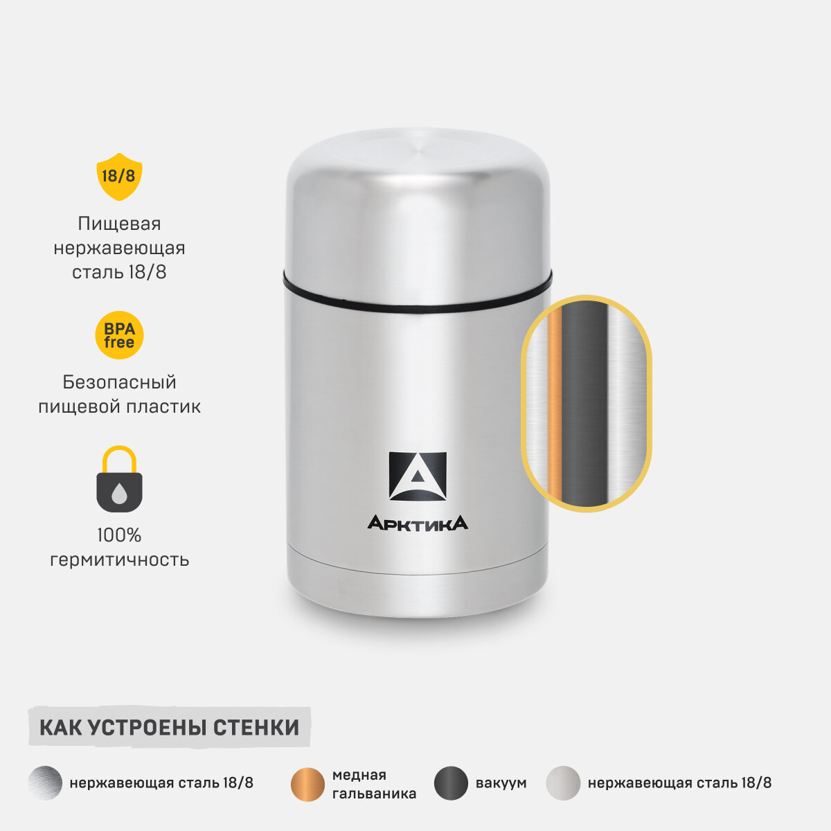 Термос для еды Арктика 301-А, 1 л, серебристый