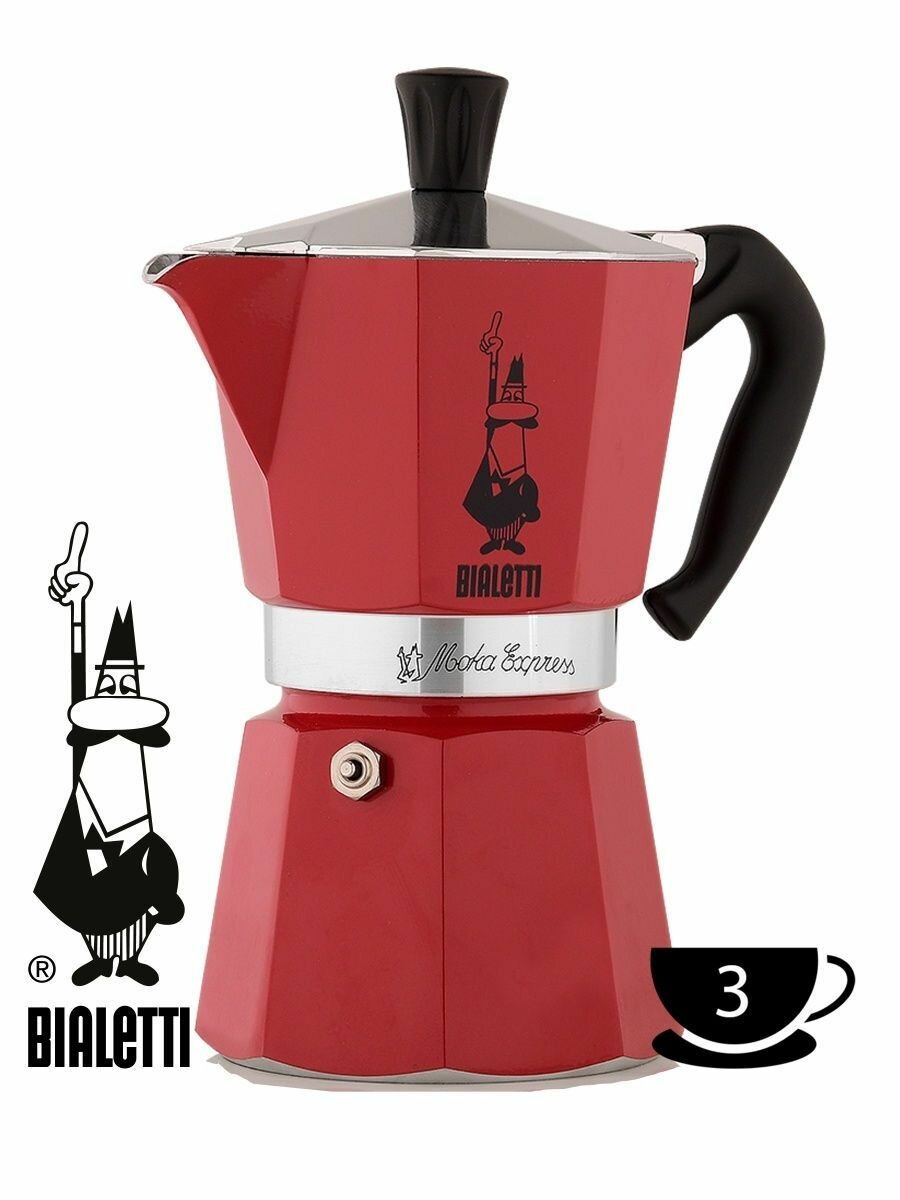 Кофеварка гейзерная BIALETTI Moka Express, 3 чашки, красный