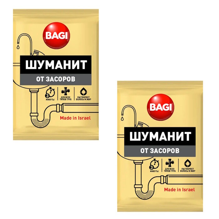 Средство для прочистки канализационных труб 70 г BAGI шуманит, для всех типов труб, 2 шт.