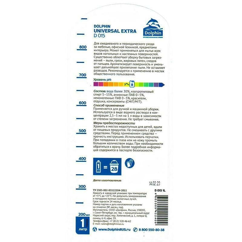 Купить Нейтральное средство для комплексной уборки помещений, Dolphin UNIVERSAL EXTRA, 1 литр-концентрат (D 015)