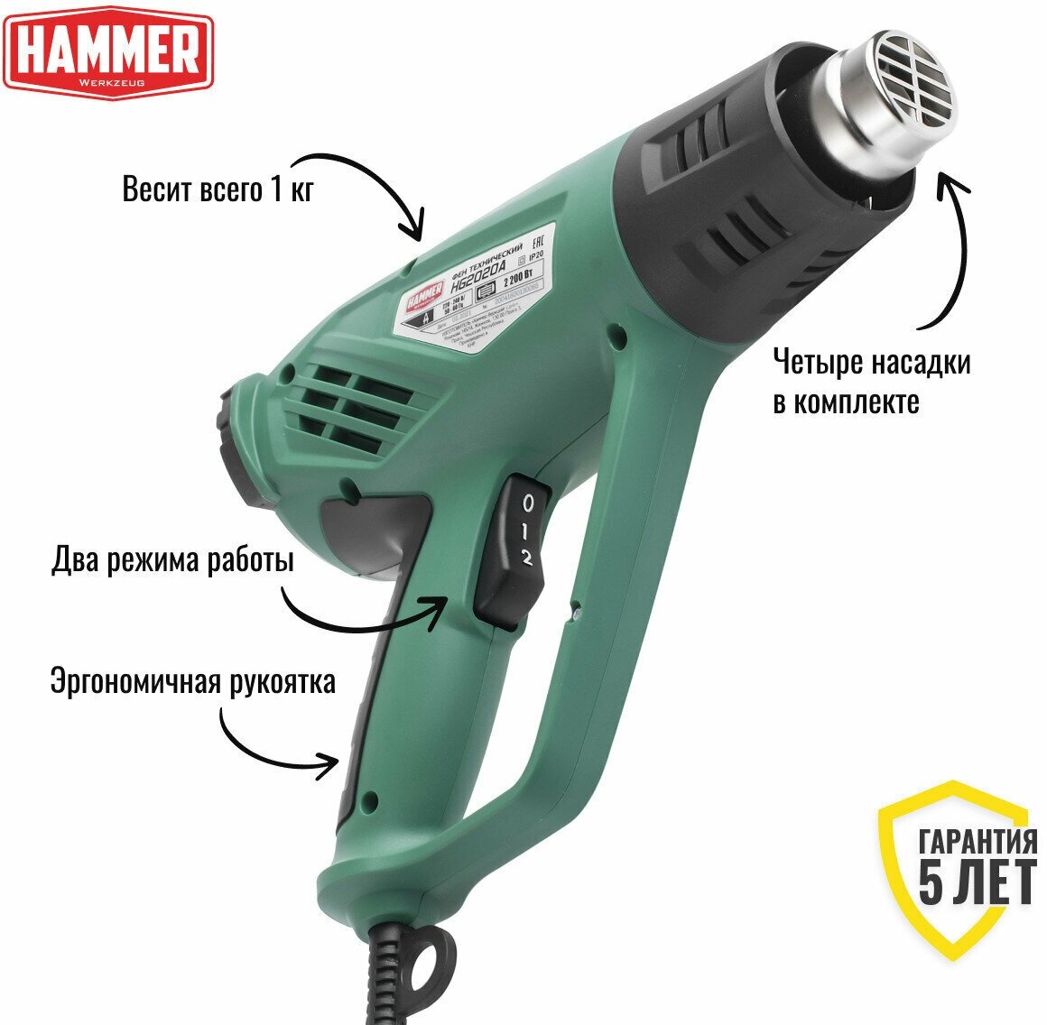 Пистолет горячего воздуха Hammer HG2020A