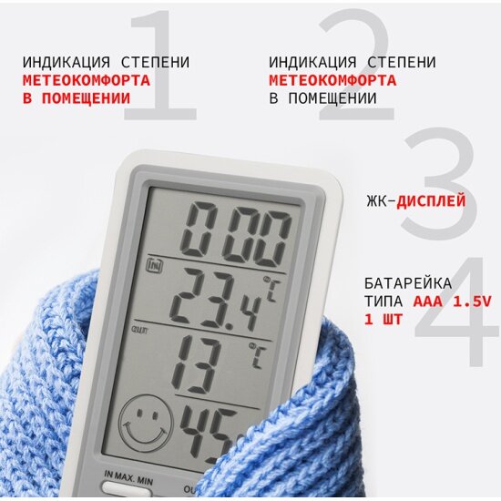 Комнатно-уличная погодная станция/термометр на подставке с кнопкой сброса параметров