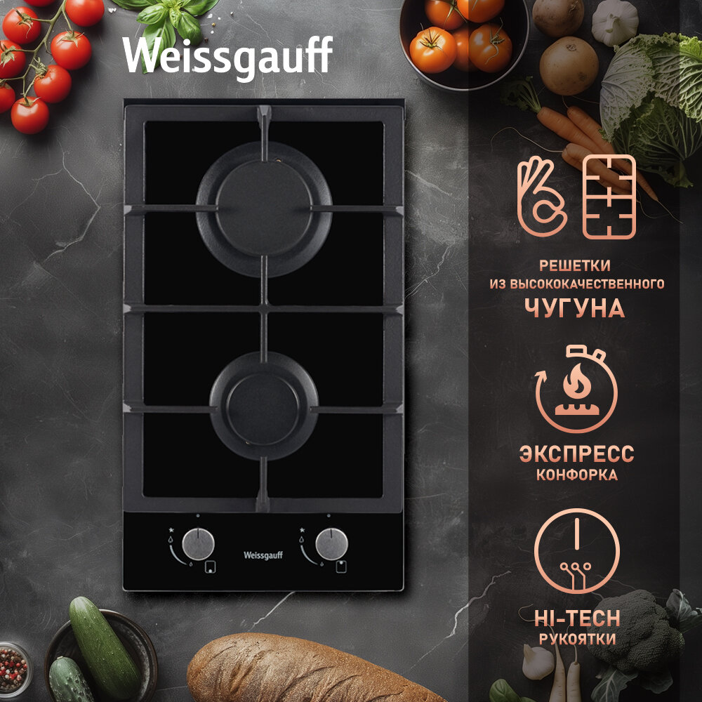 Газовая варочная панель WEISSGAUFF HGG 320 BGh, независимая, черный