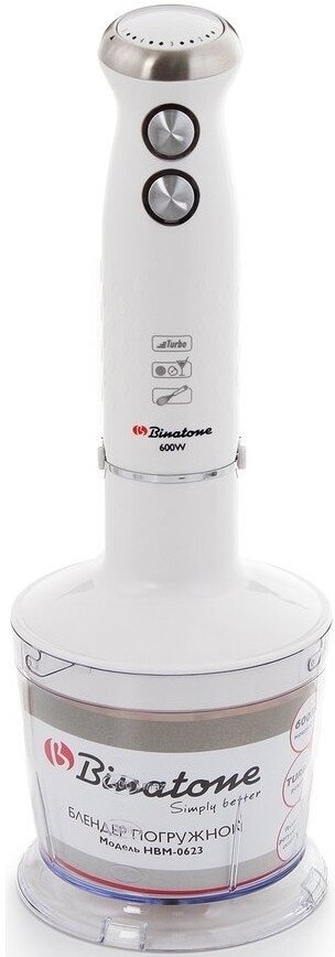 Binatone HBM-0623 Погружной блендер 600Вт, режим "турбо", белый-нержавеющая сталь