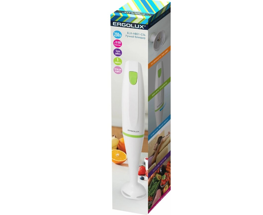 Купить Блендер ручной ELX-HB01-C34 бело-салатовый (пластик, 1 скорость, 250Вт, 220-240В) ERGOLUX