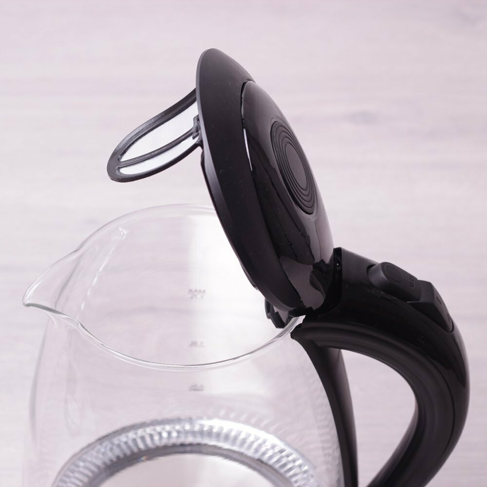 Чайник электрический 1,5 л. стеклянный Kamille KM-1700B (черный) с синей LED подсветкой (1,5 л. / черный)