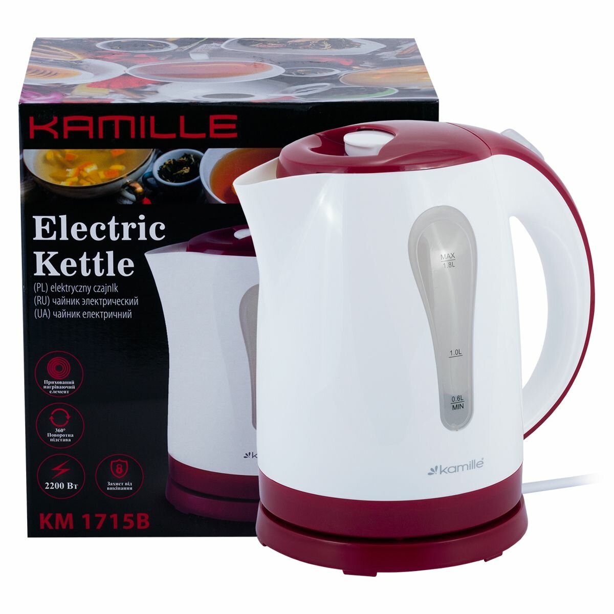Купить Чайник электрический 1,8 л. Kamille KM-1715R пластик белый с красным