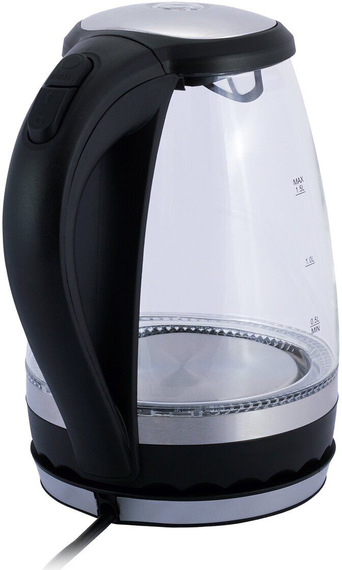 Чайник электрический 1,5 л. стеклянный Kamille KM-1701B (черный) с синей LED подсветкой (6)