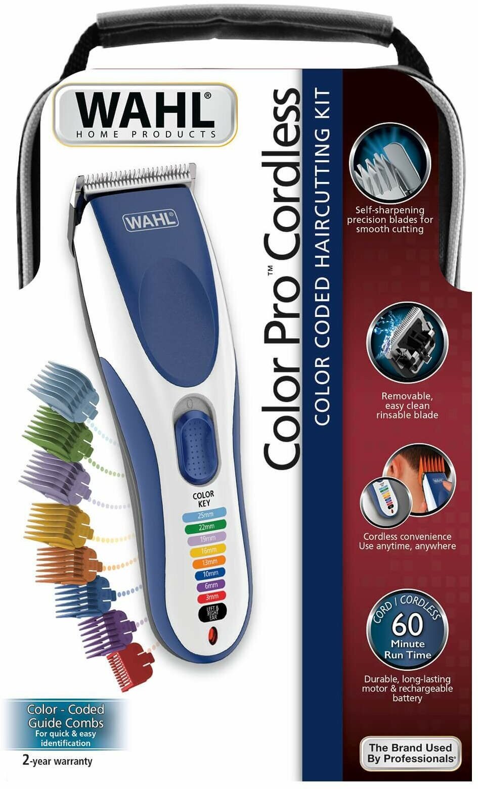 Машинка для стрижки Wahl Cordless ColorPro белый/синий (насадок в компл:10шт)