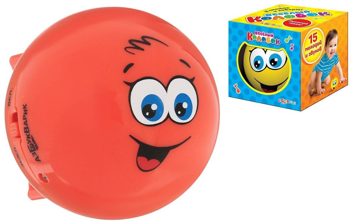 Игрушка музыкальная. Веселый колобок (15 мелодий и звуков) - Азбукварик