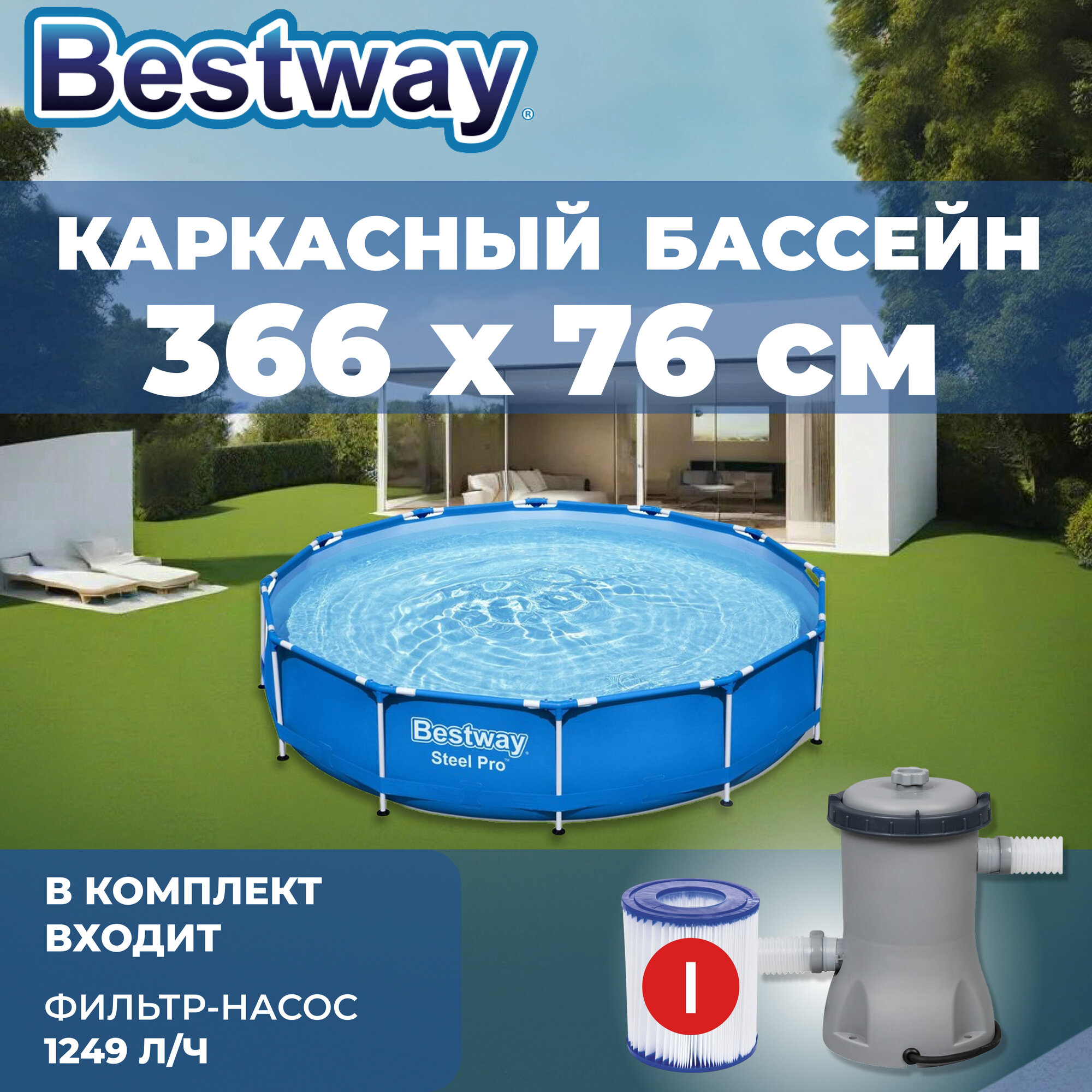 Бассейн каркасный Bestway "Steel Pro", размер 366 см, x 76 см, с фильтр-насосом, 56681, цвет голубой