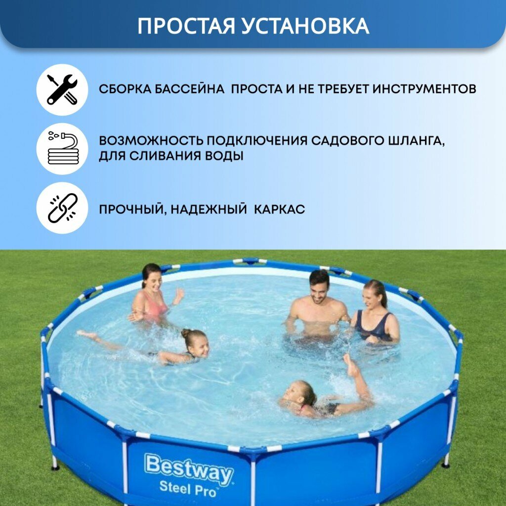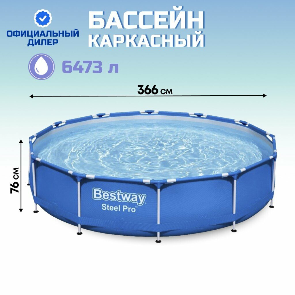 Бассейн Bestway "Steel Pro", каркасный, круглый, диаметр 366 см, высота 76 см, объем 6473 л, 56706