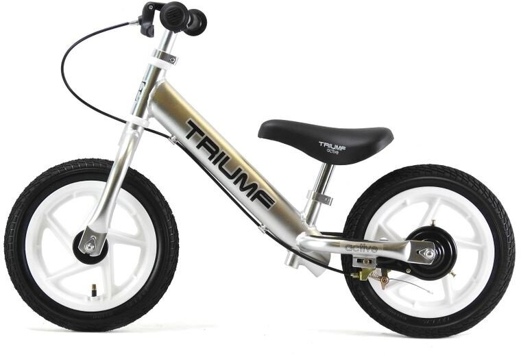 Алюминиевый беговел Triumf Active AL1201TW с ручным тормозом и надувными колёсами 12 дюймов Серебристый