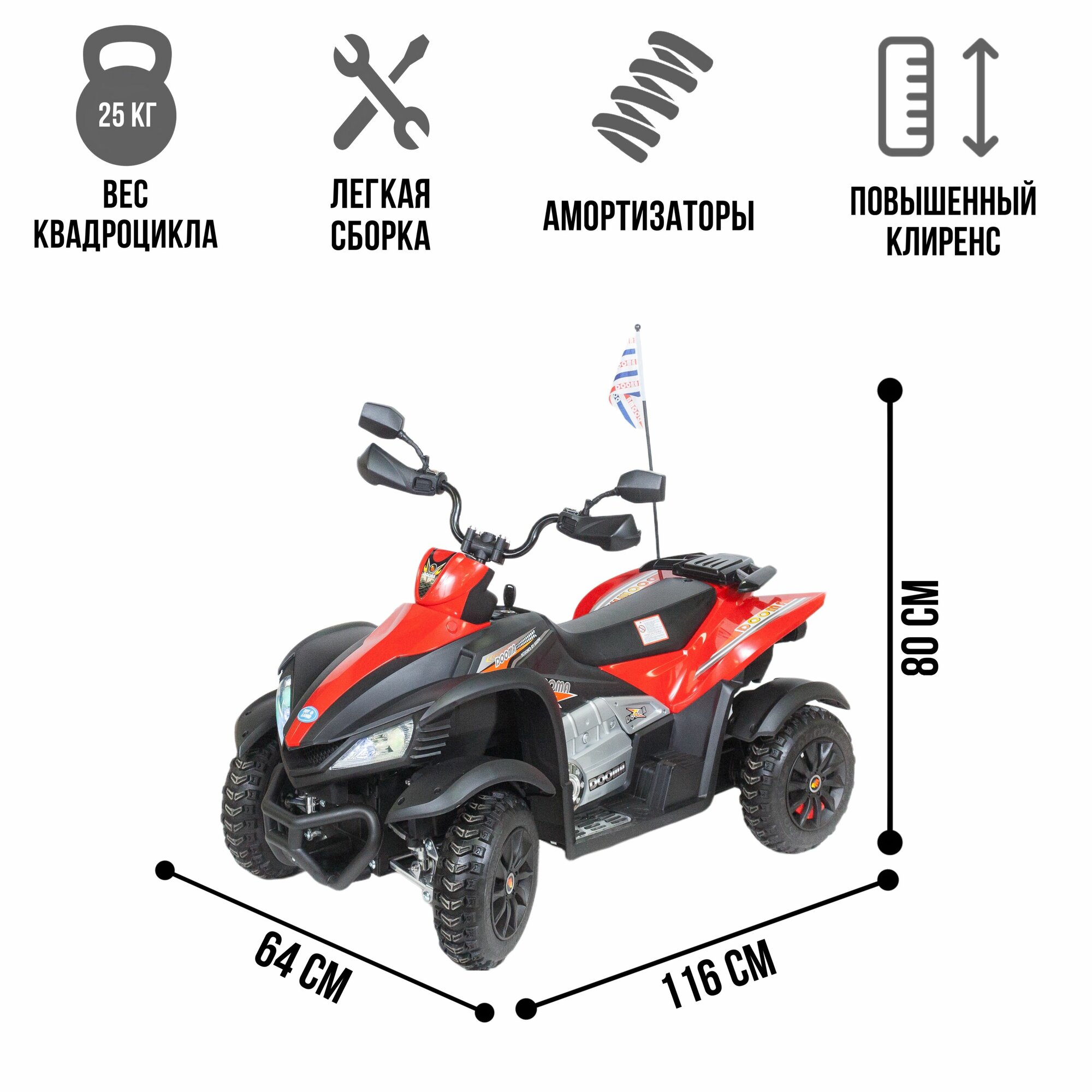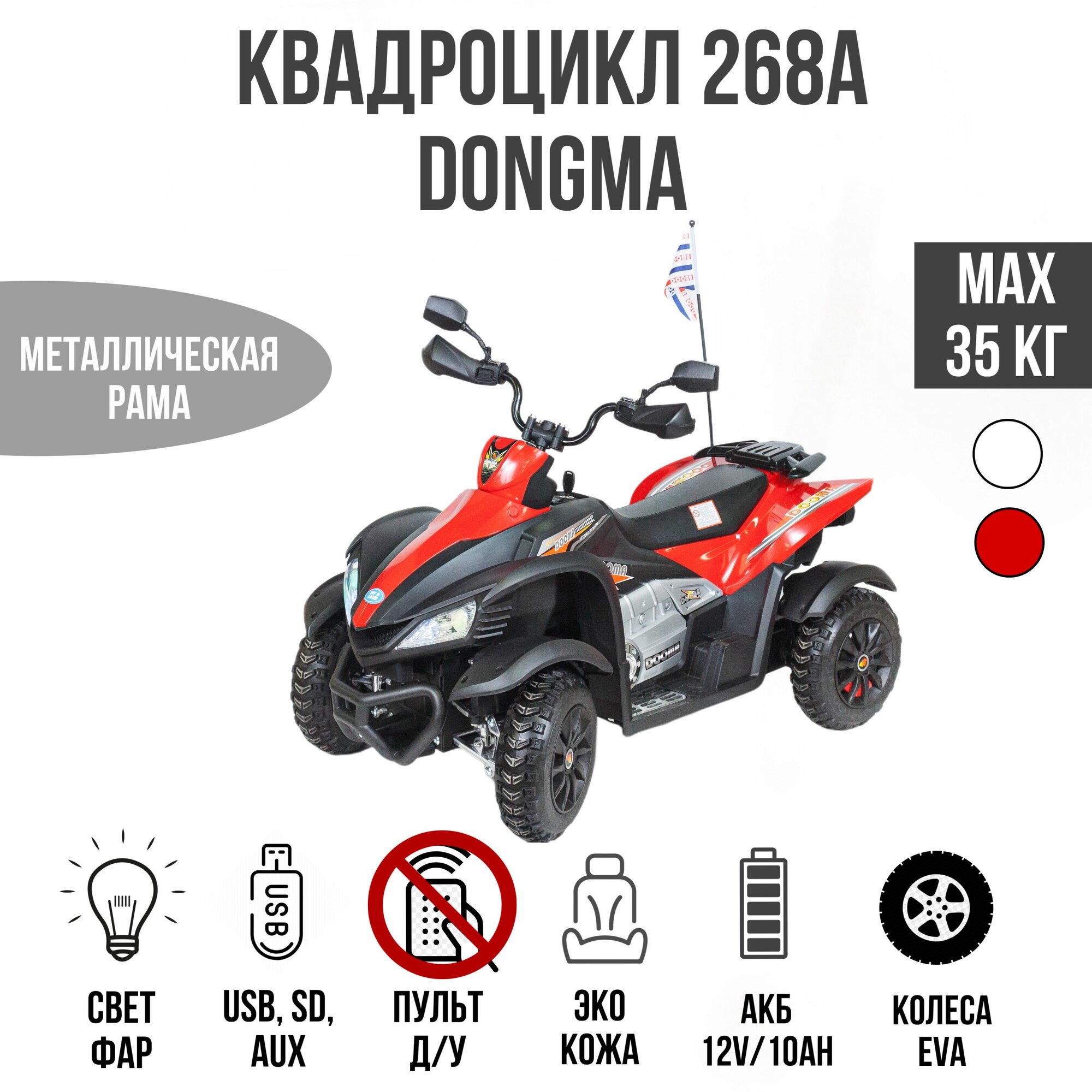 Купить Электромобиль Dongma Квадроцикл ATV DMD-268A (Красный / Прямые фары)