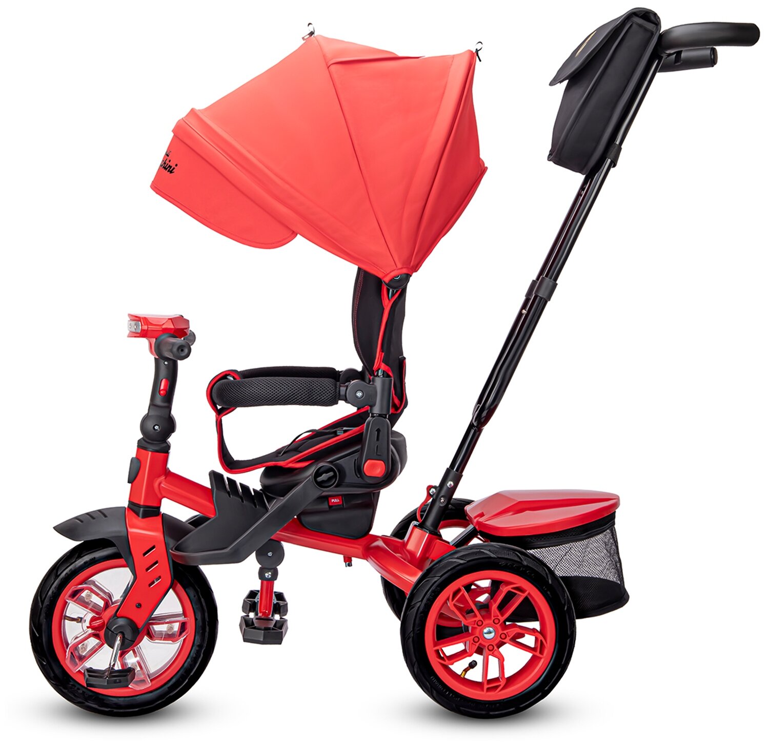 Детский трехколесный велосипед Lamborghini Panorama, складная крыша, багажник, ремень безопасности, 3 угла наклона спинки, надувные колеса 12/10, L5Y