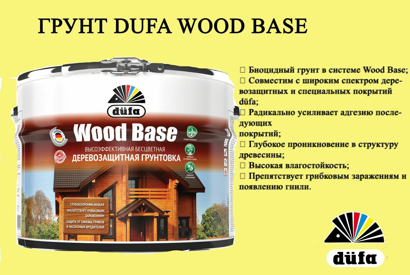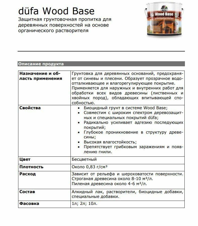 Грунтовка DUFA WOOD BASE с биоцидом, бесцветный, 2 л