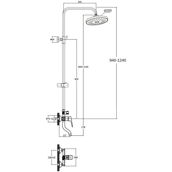 | Дополнительная информация | диаметр душевой лейки ручного душа: 95 мм; крепление ручного душа позволяет регулировать по высоте, и наклону; диаметр верхнего душа: 200 мм; у верхнего душа регулируется угол наклона (шарнир) и высота (телескопическая штанга) |