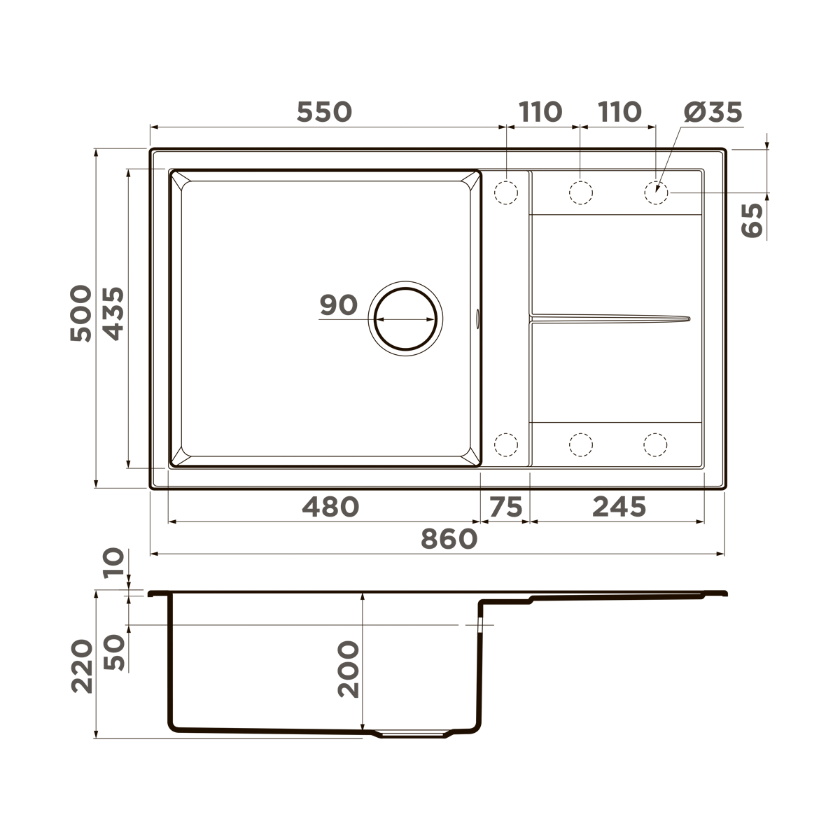 Мойка гранитная для кухни Omoikiri Sumi 86-DC 860х500 мм 4993650 темный шоколад