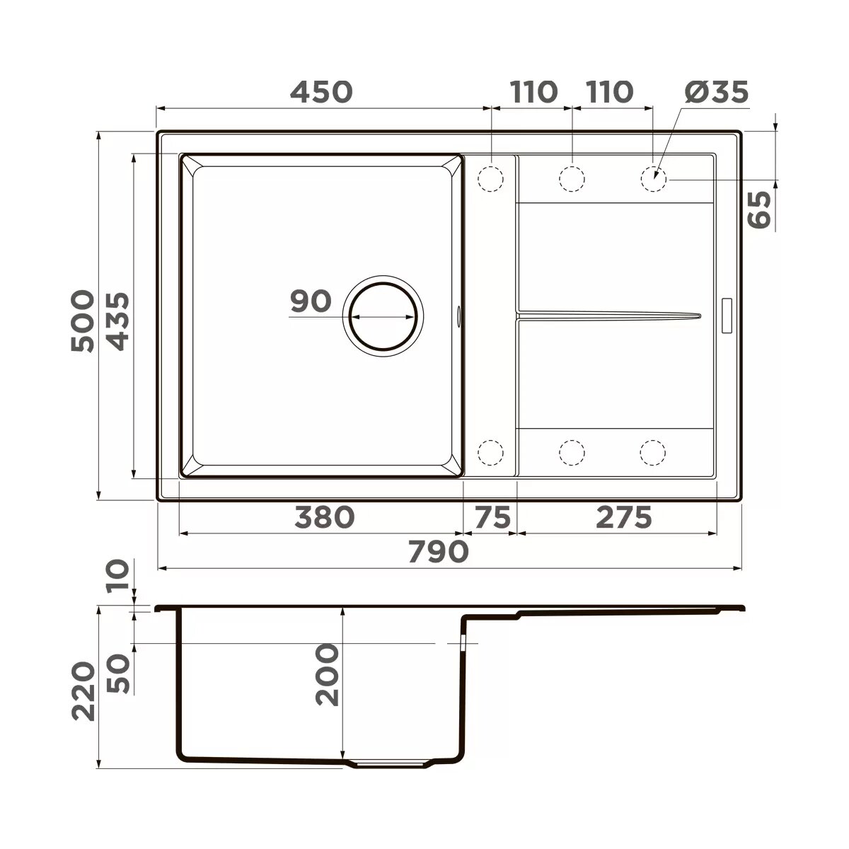 Кухонная мойка OMOIKIRI Sumi 79-EV Tetogranit (4993668) эверест
