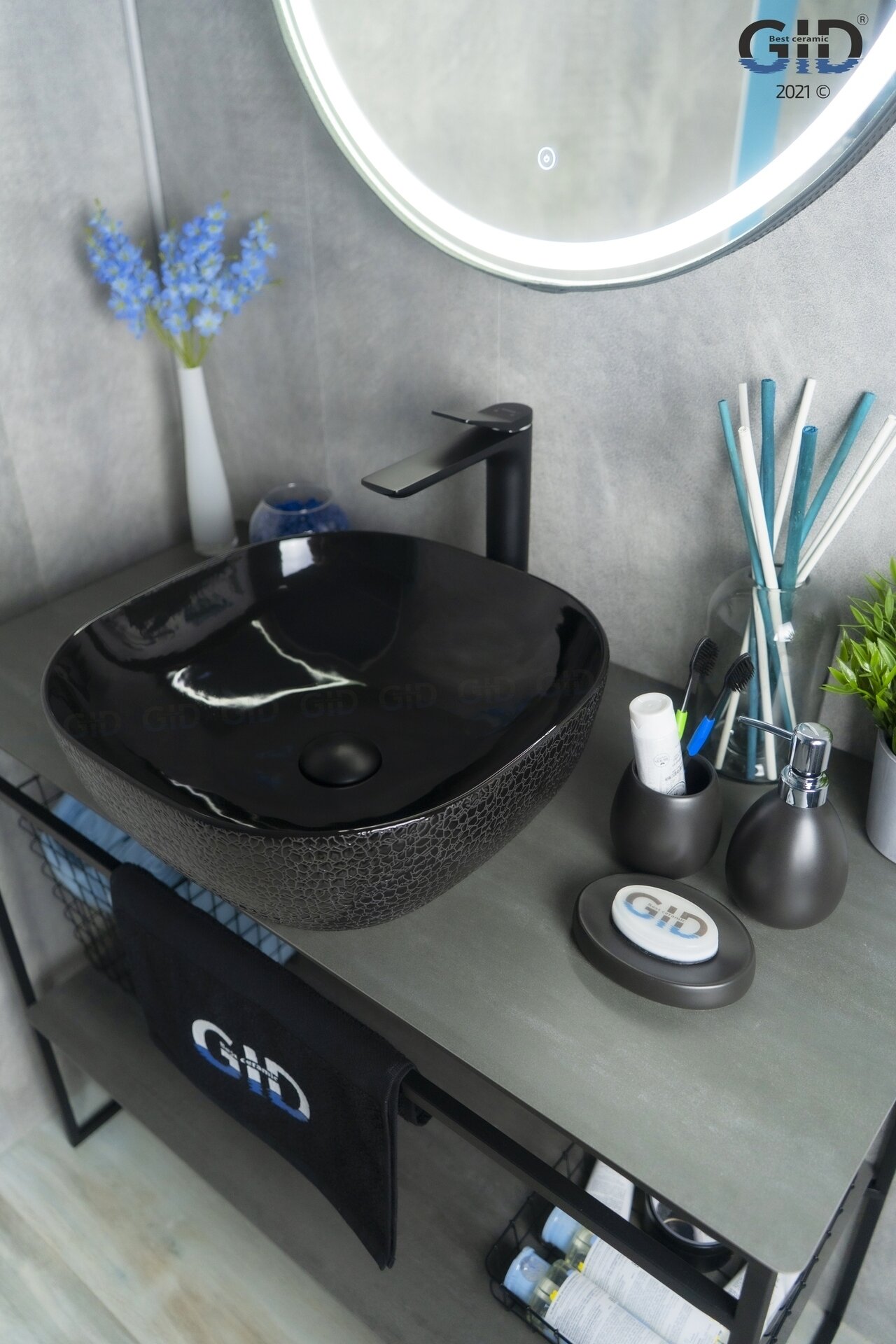 Накладная черная раковина для ванной Gid D1301H004