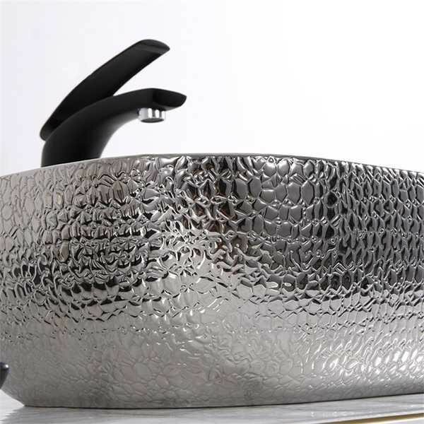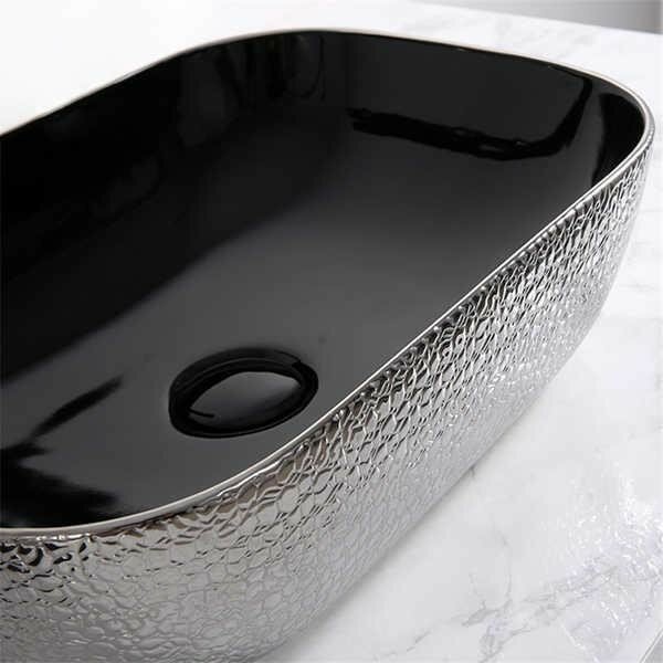 Раковина в ванную накладная CeramaLux 50 см,D1302H020 черный, серебряный