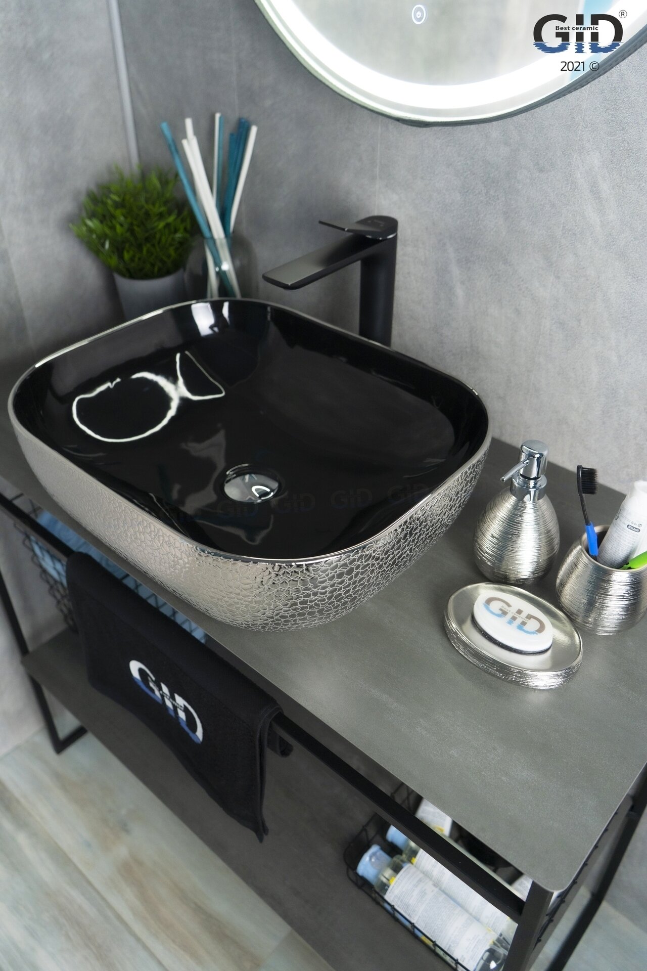 Раковина Gid D1302h020 черная/серебристая
