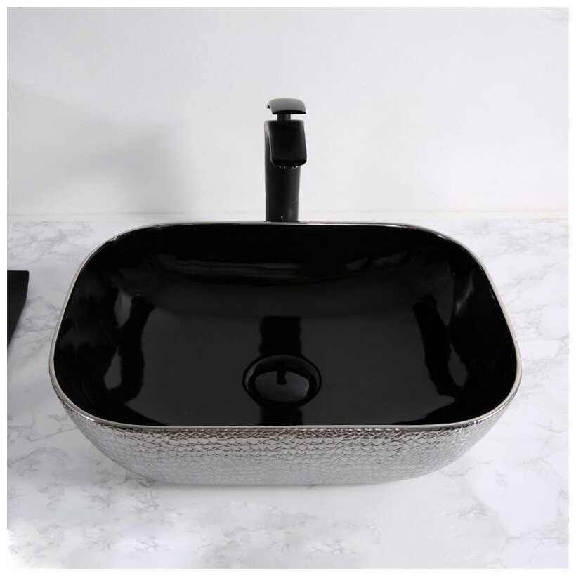 Раковина Gid Luxe Line D1302H020 накладная 50,5х40,5х13,5 черный/серебро