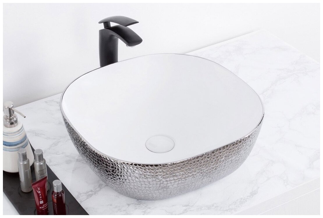 Раковина Gid Luxe Line D1301H021 накладная 42,5х42,5х14,5 белый/серебро