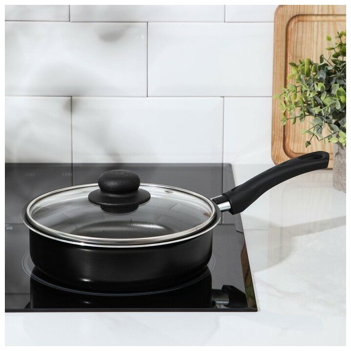 Купить Сотейник Consul, 1,5 л, d=20 см, пластиковая ручка, стеклянная крышка, антипригарное покрытие, цвет чёрный