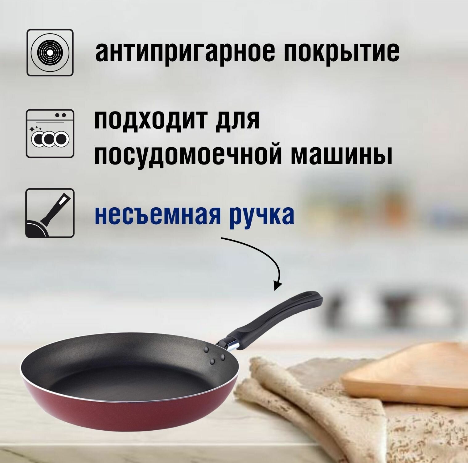 Сковорода «Эксперт», d=24 см, пластиковая ручка, антипригарное покрытие, цвет бордовый