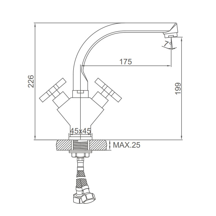 Смеситель для кухни A4475, двухрычажный, с гайкой, хром