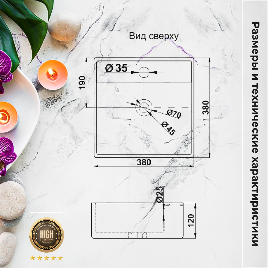 | Число размеченных отверстий под смеситель | отсутствуют |