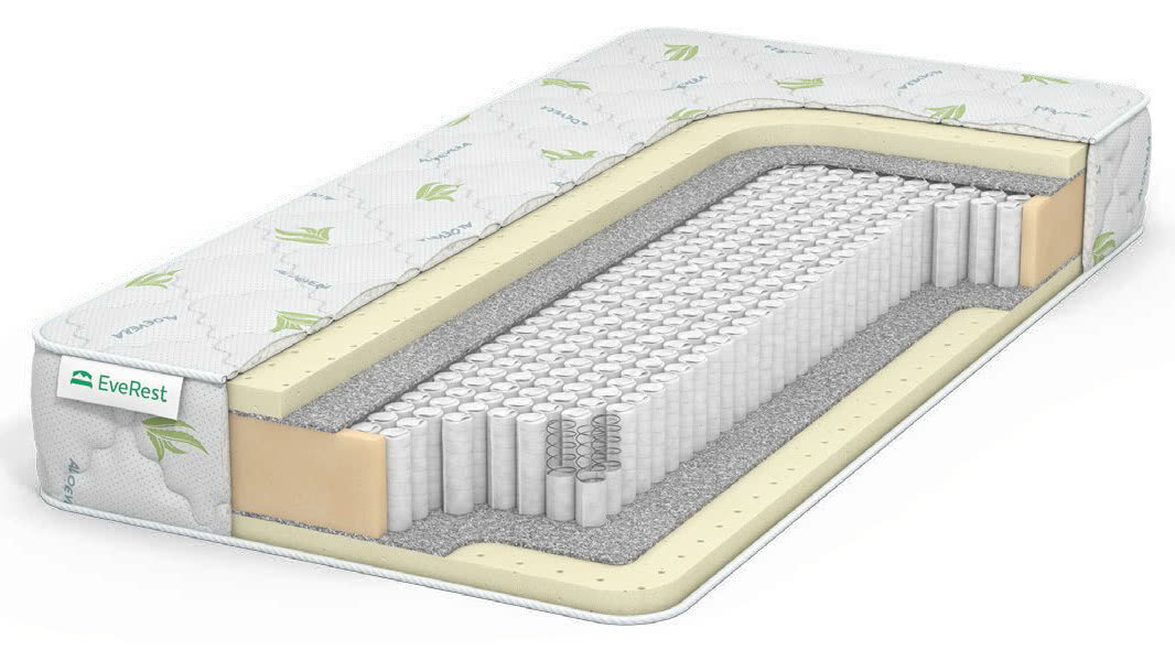 Матрас Everest Софт Латекс 30 S-1000 75х180 см, независимый пружинный блок S1000, трикотажный чехол Aloe Vera