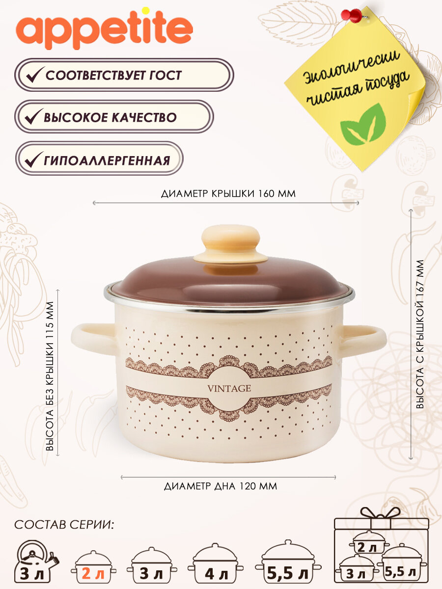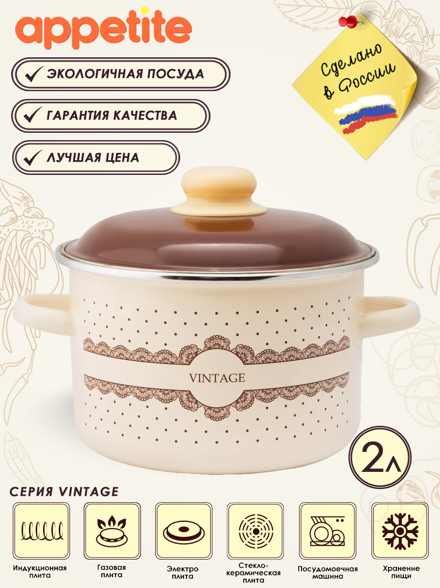 Кастрюля эмалированная Vintage 2 л. Appetite
