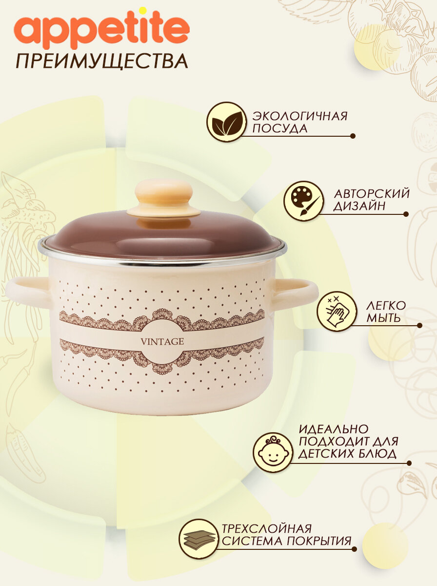 Кастрюля эмалированная Vintage 3 л. Appetite