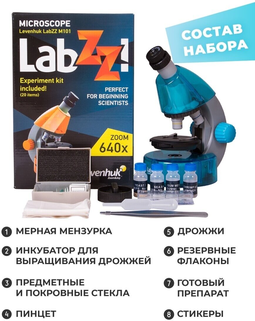 Микроскоп LEVENHUK LABZZ M101 AZURE 40-640 крат, лазурь