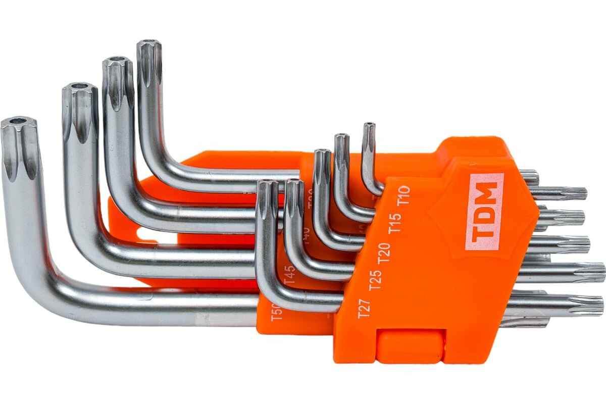 TDM Набор ключей "TORX" с отверстием 9 шт: Т10-Т50 (держатель в блистере), CR-V сталь "Алмаз" SQ1021-0102 (50 шт.)